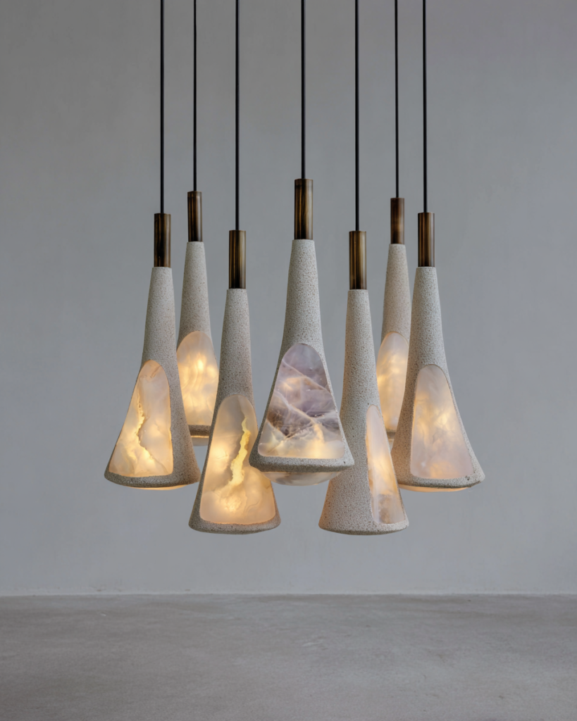 Handcrafted bespoke pendant lighting by BOND Studio. Sculptural forms in alabaster, bronze and refined materials. Purpose-built for AD100 architects and luxury interior designers seeking singular illumination.